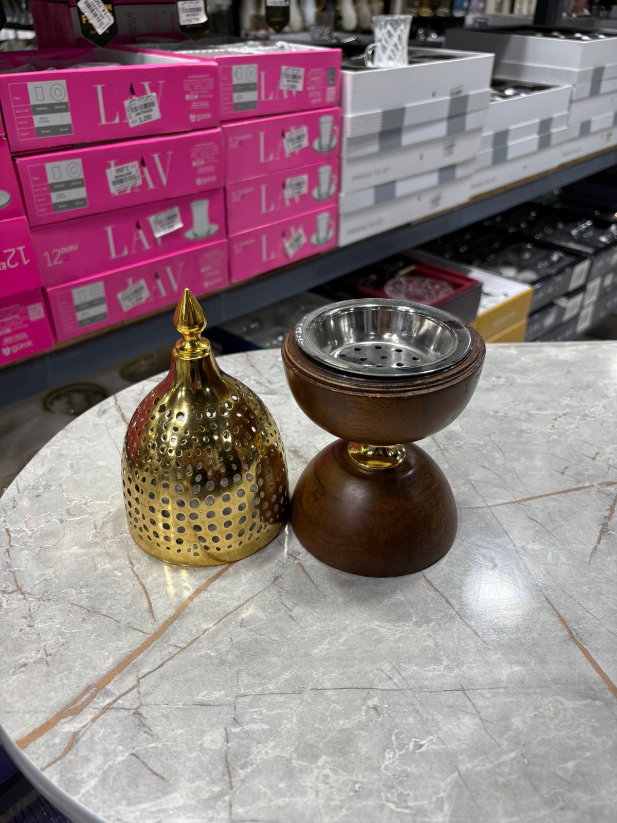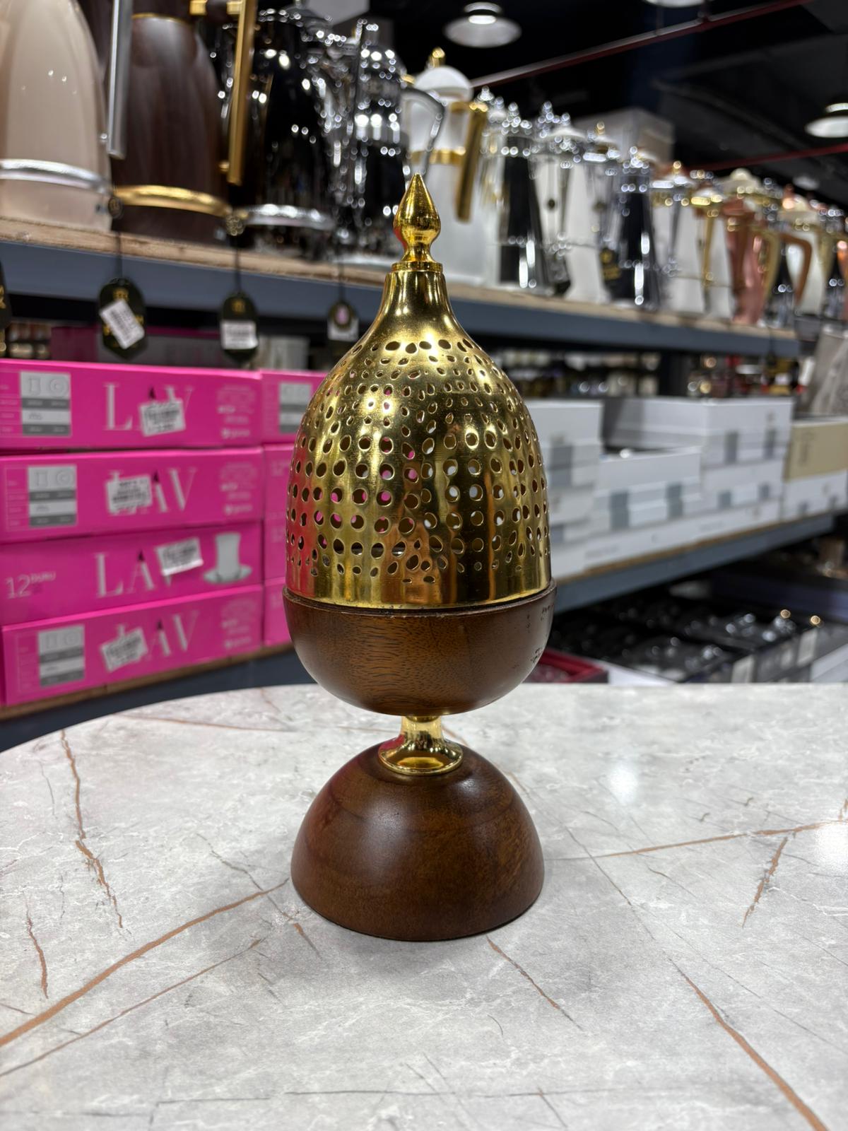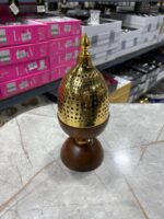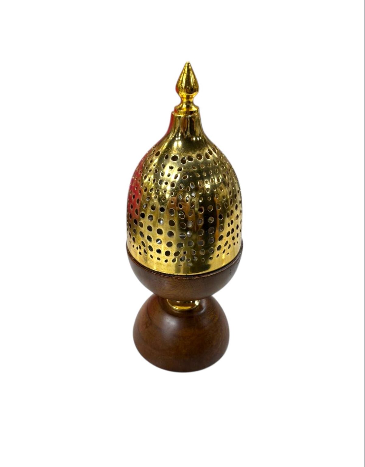 مبخر هندي – لون خشبي مع غطاء ذهبي